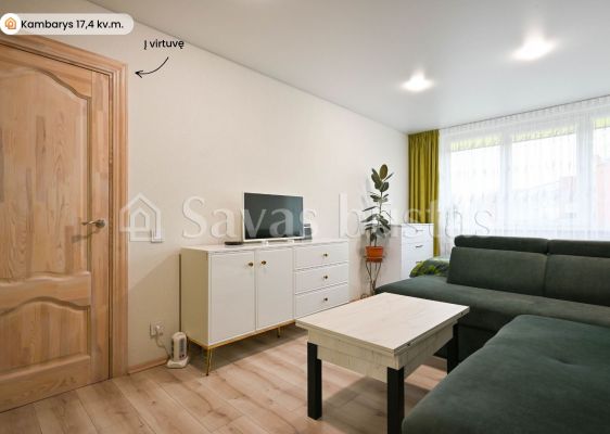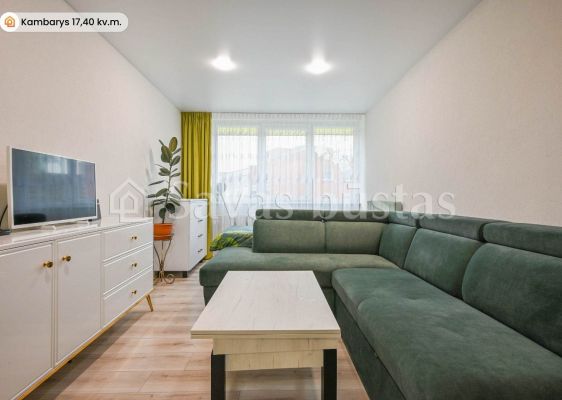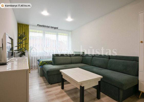 Butas funkcionaliai išplanuotas: svetainė sujungta su virtuve, kambario erdvė - 17,40 kv.m. Įrengimas naujas: pakeisti vamzdynai ir elektros instaliacija, plastikiniai lang...