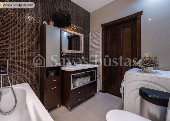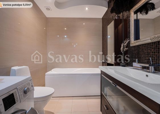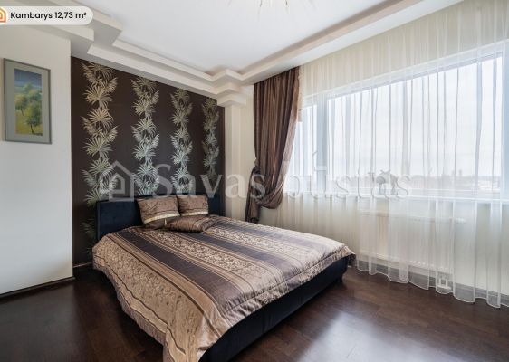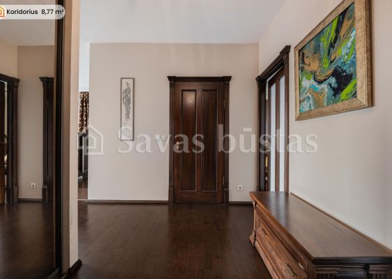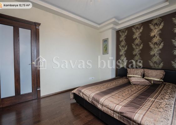 Interjere dominuoja kokybiški sprendimai: sudėtos natūralaus ąžuolo parketlentės, virtuvės bei vonios zonose - ilgaamžės akmens masės plytelės, sumontuotos pagal specialų užsakymą pagamintos medžio masyvo durys bei baldai, integruotos talpios sieninės spintos. Virtuvėje sumontuota „Electrolux“, „AEG“ bei „Gorenje“ buitinė technika, o vonios kambaryje - „Hansgrohe Axor“ linijos santechnika bei ispaniški baldai.