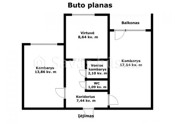 - Kambarys 17,14 m²