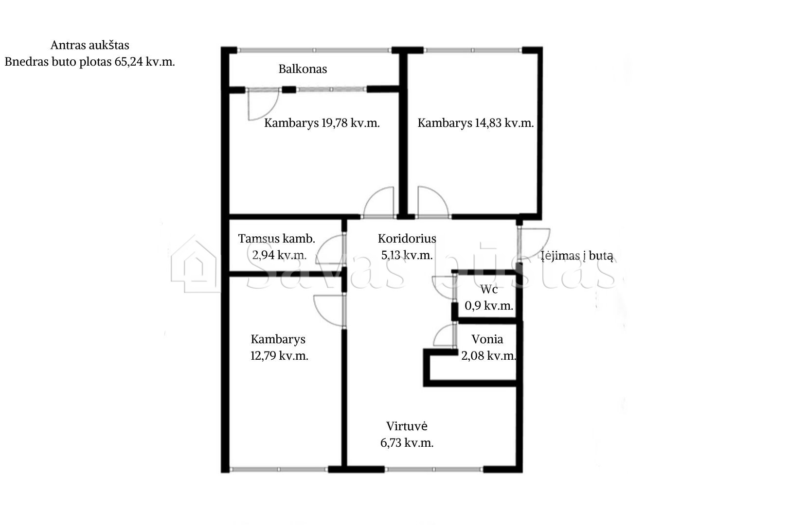 - Plotas: 65,24 kv. m;