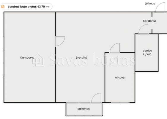 - Bendras plotas – 43,79 m²