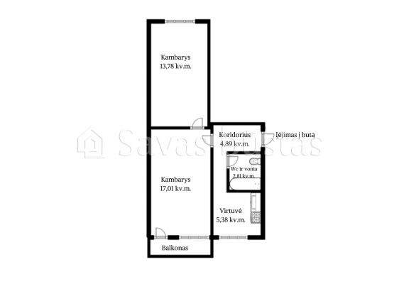 - Kambarys – 13,78 kv. m.;