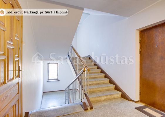 Butas tvarkingas, prižiūrėtas, tinkamas gyventi iš karto. Parduodamas su jame esančiais baldais ir buitine technika. Butui priklauso rūsys, yra erdvus įstiklintas balkonas. Vonia ir WC – vienoje patalpoje. Tvarkinga namo laiptinė, ramūs kaimynai, buto langai į vidinį namo kiemą, pro langus matosi daug žalumos.
