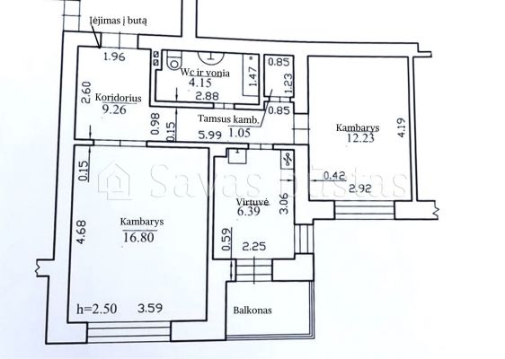 • Kambarių sk. – 2 su balkonu, tamsus kambariukas;