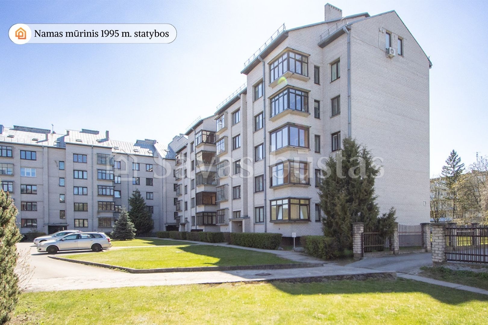 • Mūrinis, baltų plytų namas;