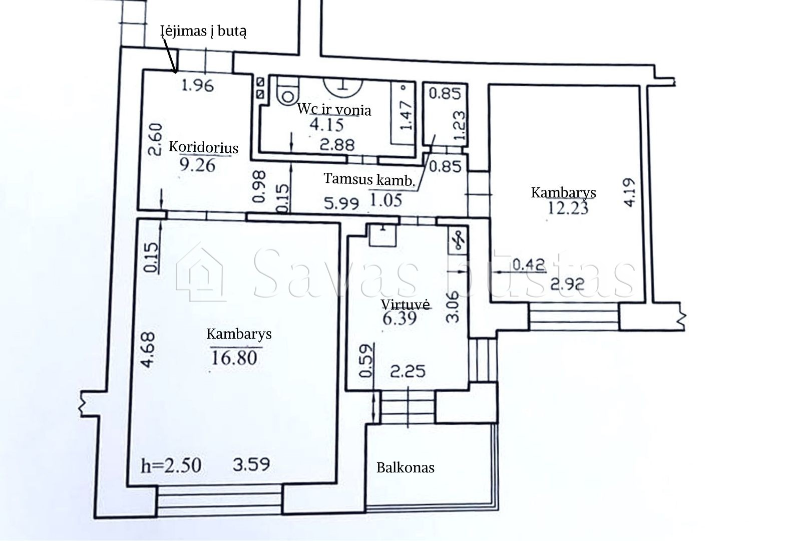 • Kambarys – 12,23 kv. m.;
