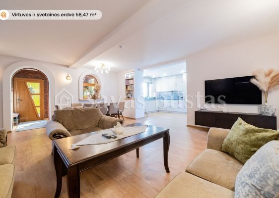 Svetainės ir virtuvės erdvė – 58,47 m²