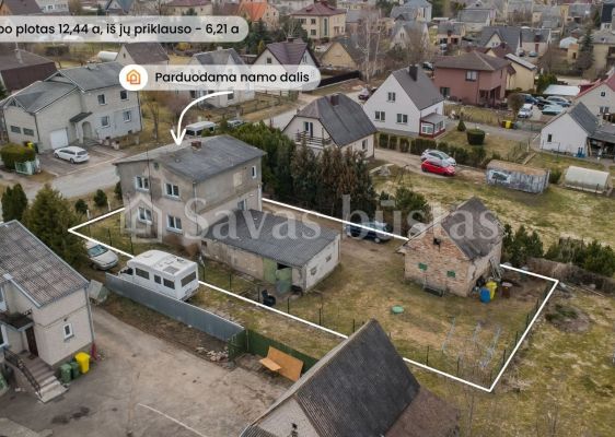 Bendras sklypo plotas – 12,44 a, priklausanti dalis – 6,21 a