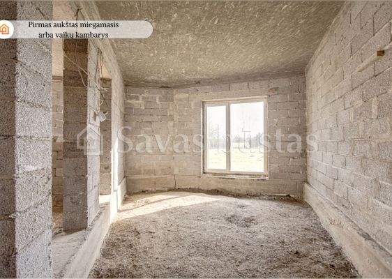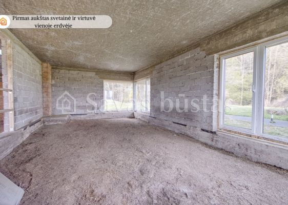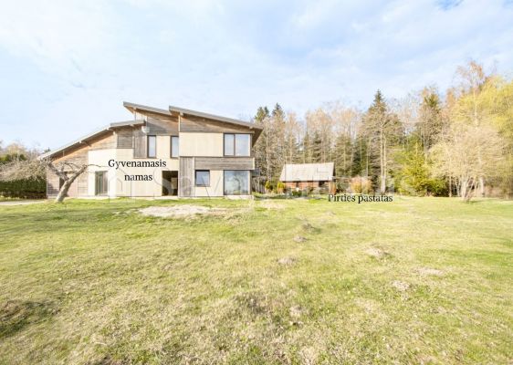 Pagrindinis namas – 256,47 kv.m., 2020 m. statybos. Dideli langai suteikia daug natūralios šviesos ir leidžia mėgautis vaizdais į gamtą visais metų laikais. Namas šiuo metu yra 80 % baigtumo, todėl naujieji savininkai turės galimybę įsirengti interjerą pagal savo skonį, poreikius ir viziją.