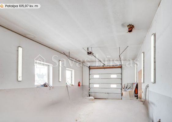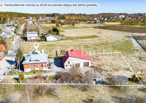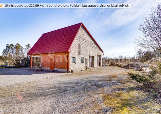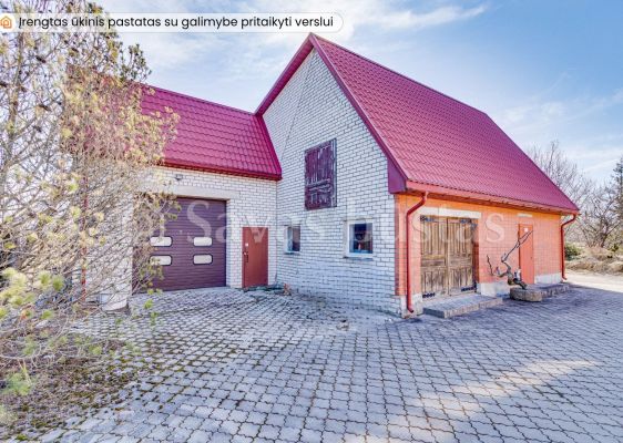 Namui priklauso 29,30 arų žemės sklypas. Kiemas išklotas trinkelėmis, sumontuoti metaliniai vartai. Asfaltuotas privažiavimas. Sklype taip pat yra įrengtas 184,38 kv. m ūkinis pastatas. Didelės patalpos, net 3 automatiniai vartai, patogu įvažiuoti ir paaukštintam mikroautobusui. Atvestas vandentiekis ir kanalizacija, yra trifazė elektra. Patalpas puikiai galima pritaikyti autoservisui ar kitai veiklai.