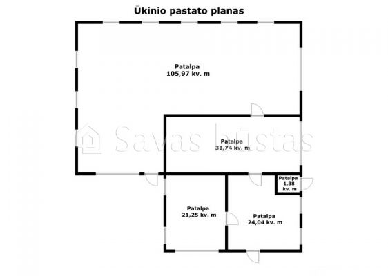 - Erdvus, įrengtas ūkinis pastatas;