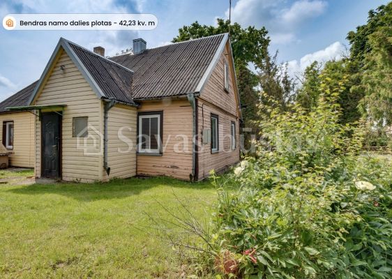 [body_mob_short] => Parduodama įrengta rąstinio namo dalis 42,23 kv. m ploto su sklypo dalimi Radviliškyje, Dariaus ir Girėno g. 102. Namas yra 1920 m. statybos. Bendras namo plotas – 84,46 kv. m. Parduodamoje dalyje yra įrengti du kambariai, virtuvė bei naujai įrengtas vonios kambarys. Įstatyti plastikiniai langai. Atnaujintos sienos, lubos. Atnaujinta elektros instaliacija, pakeisti švietuvai. Namo dalis šildoma kietu kuru – yra krosnis. Įvestas miesto vandentiekis...