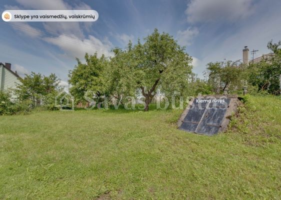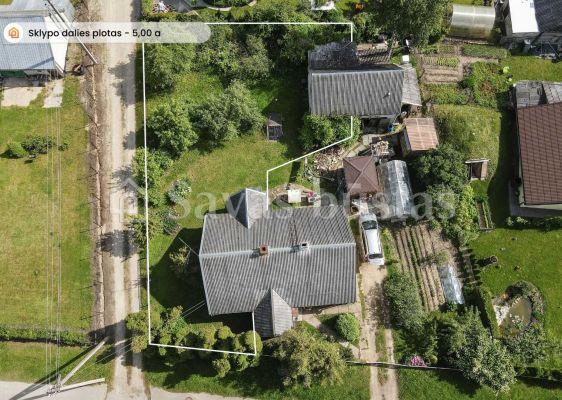 Kartu su namo dalimi parduodama sklypo dalis, kurios plotas yra 5,00 arai. Viso sklypo plotas yra 8,85 arai. Parduodama dalis ūkinio pastato, bei kiemo rūsys. Sklype yra vaismedžiai, vaiskrūmiai. Teritorija aptverta tvora. Asfaltuotas privažiavimas.