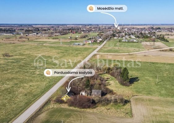 Parduodamas gyvenamasis namas Skuodo rajone, šalia Mosėdžio miestelio, Miesto Kalniškių g. su 22 arais žemės sklypu. Tai vieta, kur aplink atsiveria platūs laukai, jaučiamas vienkiemio privatumas ir ramybė, o vos už kelių minučių kelio pasiekiamas jaukus ir tvarkingas Mosėdžio miestelis bei jo tvenkinys. Rąstinio namo plotas 53,46 kv. m.