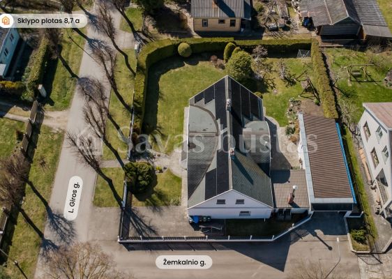Parduodamas vieno aukšto su mansarda gyvenamasis namas Šiauliuose, Žemkalnio g. 11. Bendras namo plotas – 202,96 m², sklypo plotas – 8,7 aro. Namas rąstinis, apmūrytas ir apšiltintas 10 cm putų polistirolu. Fasadas – dailylentės, stogas – bituminė danga. Namas šiltas ir ekonomiškas. Ant stogo Įrengta 10 kW saulės elektrinė. Namas šildomas dujomis, yra kondicionierius pirmame aukšte bei židinys. Miesto vandentiekis ir kanalizacija. Pakeista elektros instaliacija ir santechnika. Plastikiniai langai, grindys – laminuota danga, sienos dažytos, san. mazguose – plytelės. Name įrengti du WC (abiejuose aukštuose). Name yra pirtis. Parduodama su visais baldais ir buitine technika, yra integruota virtuvė, buitinė technika (orkaitė, kaitlentė, šaldytuvas, skalbimo mašina) Sklypas aptvertas, apželdinta teritorija, brandūs augalai, yra lauko pavėsinė su židiniu bei mūrinis garažo pastatas dviem automobiliams su pakeliamais vartais. Geras privažiavimas, šalia Centrinis parkas.