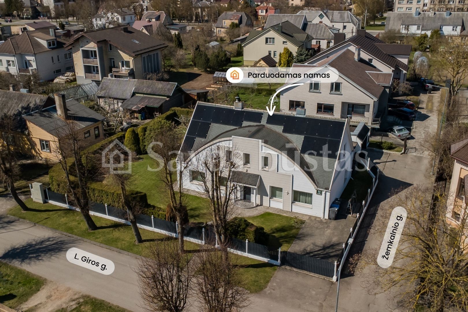 Parduodamas vieno aukšto su mansarda gyvenamasis namas Šiauliuose, Žemkalnio g. 11. Bendras namo plotas – 202,96 m², sklypo plotas – 8,7 aro. Namas rąstinis, apmūrytas ir apšiltintas 10 cm putų polistirolu. Fasadas – dailylentės, stogas – bituminė danga. Namas šiltas ir ekonomiškas. Ant stogo Įrengta 10 kW saulės elektrinė. Namas šildomas dujomis, yra kondicionierius pirmame aukšte bei židinys. Miesto vandentiekis ir kanalizacija. Pakeista elektros instaliacija ir santechnika. Plastikiniai langai, grindys – laminuota danga, sienos dažytos, san. mazguose – plytelės. Name įrengti du WC (abiejuose aukštuose). Name yra pirtis. Parduodama su visais baldais ir buitine technika, yra integruota virtuvė, buitinė technika (orkaitė, kaitlentė, šaldytuvas, skalbimo mašina) Sklypas aptvertas, apželdinta teritorija, brandūs augalai, yra lauko pavėsinė su židiniu bei mūrinis garažo pastatas dviem automobiliams su pakeliamais vartais. Geras privažiavimas, šalia Centrinis parkas.
