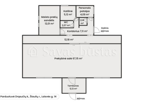 [title_web] => Parduodamos pilnai įrengtos prekybinės paskirties komercinės patalpos Laisvės g. 14, Drąsučiai, Šiaulių r.