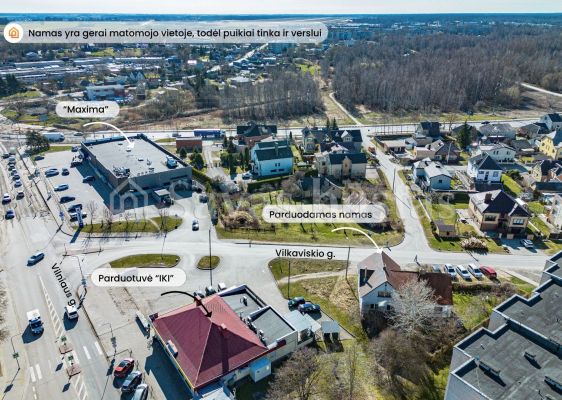 Namas puikiai tiktų ir gyvenimui, ir verslui vykdyti arba abu iš karto! Erdvios patalpos, atskirį įėjimai iš gatvės, labai geras matomumas, automobilių stovėjimo aikštelė šalia.