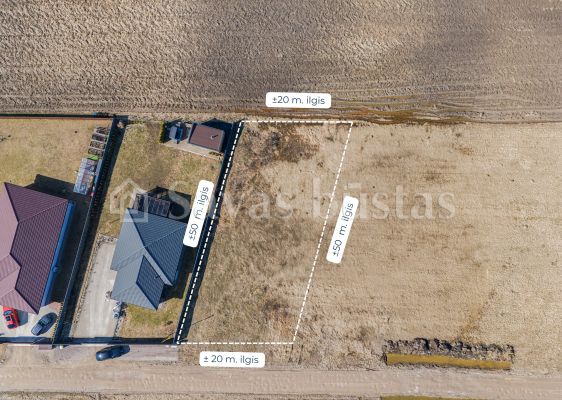 - Sklypo išmatavimai: ~20 m x ~50 m x ~20 m x ~50 x