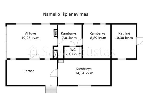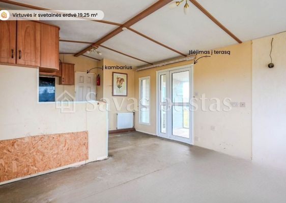 - Virtuvė sujungta su svetaine: 19,25 m²